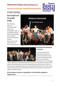 Du bist hier: Startseite1 / Projektbericht: „Die Stunde, da wir nichts voneinander wussten“2 / 2025 – Theaterstück + Workshops in Reutlingen3 / Bericht über deutsch ivorisches Jugendtheaterprojekt 2025 in Reutling...