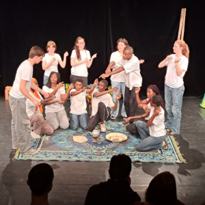 Du bist hier: Startseite1 / Projektbericht: „Die Stunde, da wir nichts voneinander wussten“2 / 2025 – Theaterstück + Workshops in Reutlingen3 / Szenenfoto andre Länder andre Sitten Zu Gast beim afrikanischen Tee